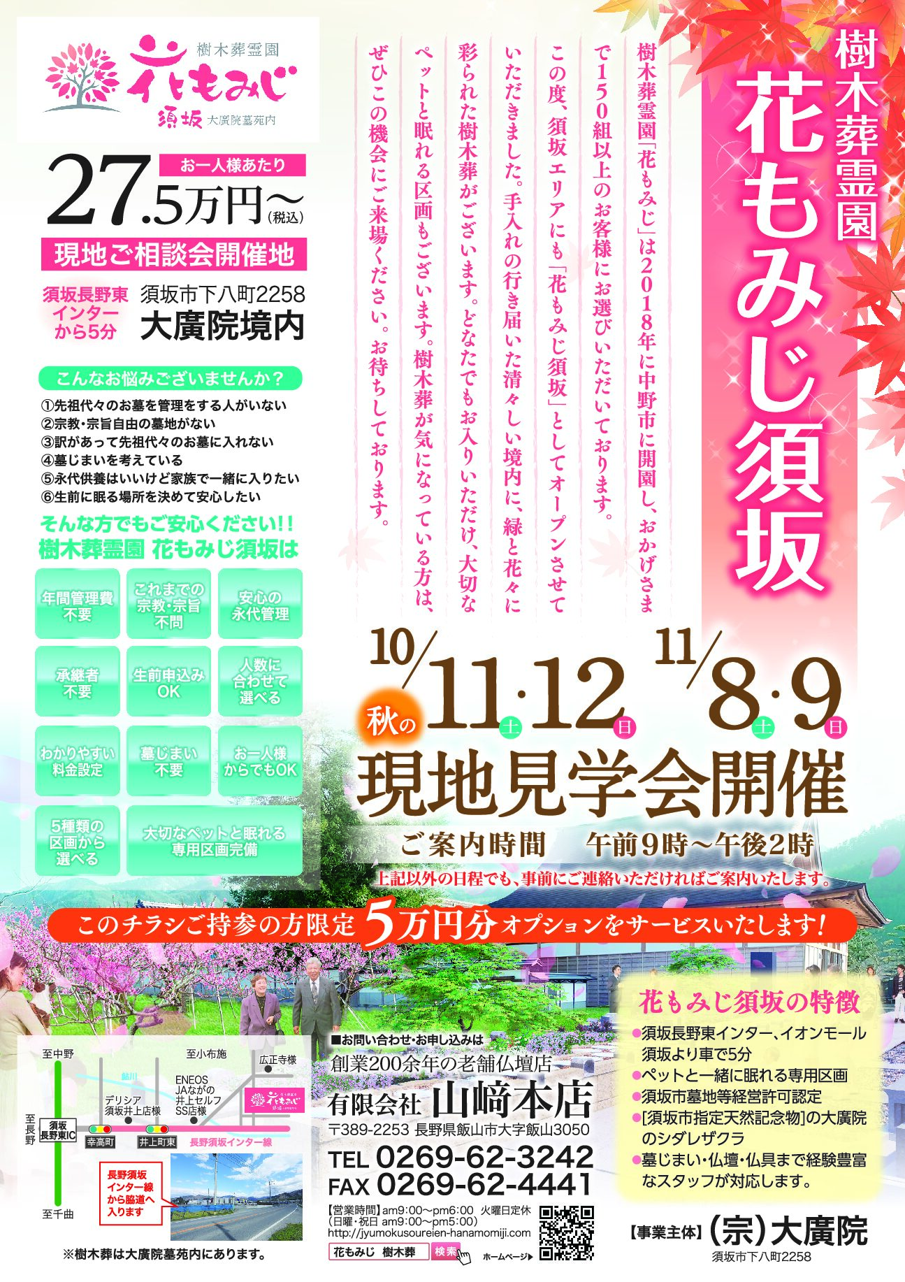 さて、6月にグランドオープンしました樹木葬霊園「花もみじ須坂」ですが、秋の現地見学会を開催いたします。